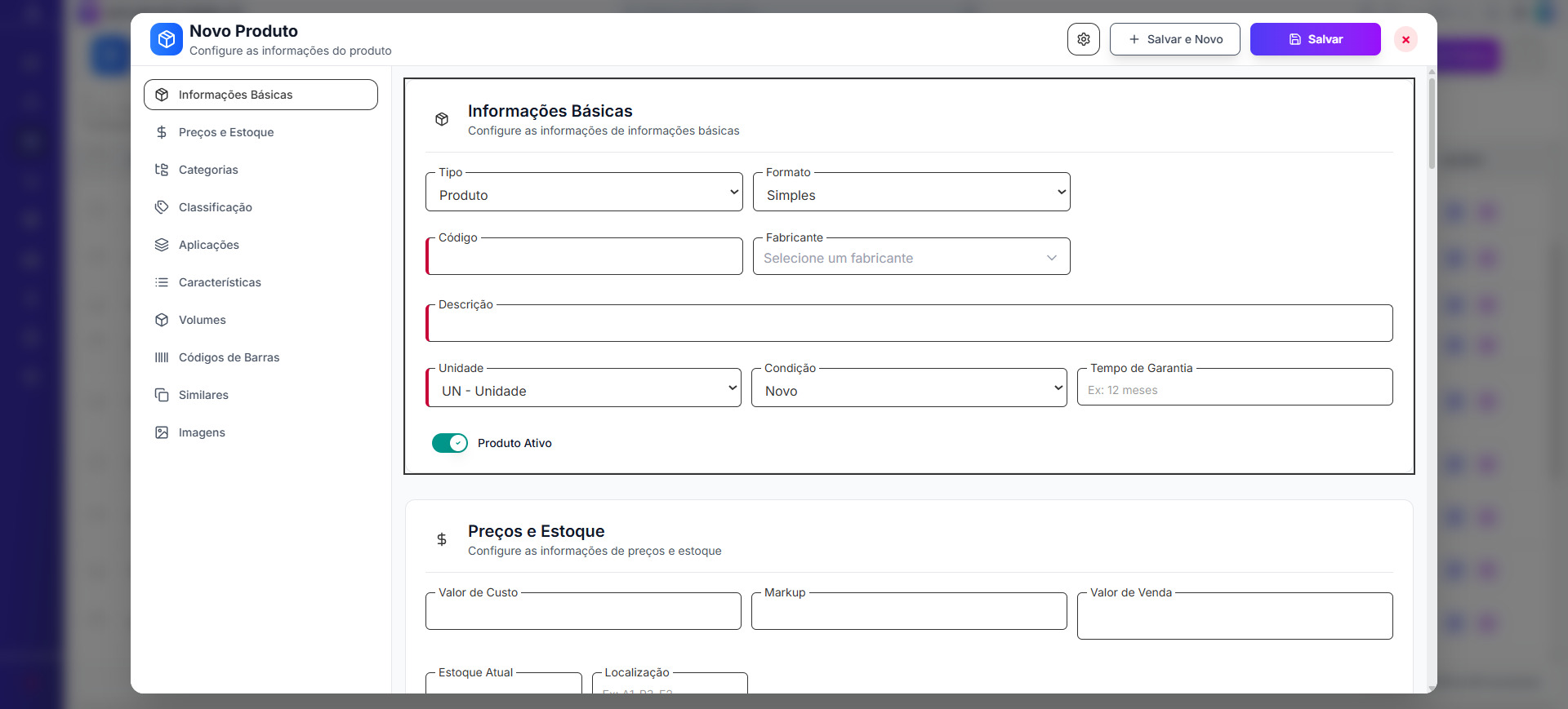 | Fabricante | ❌ | Fabricante ou marca (seleção via modal) |