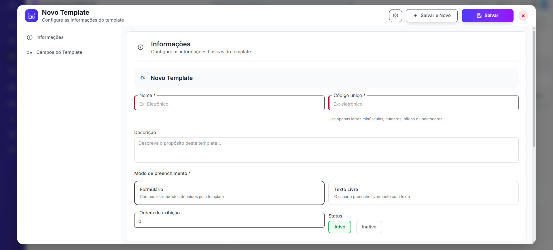 | Status | ✅ | Define se o template está Ativo ou Inativo |