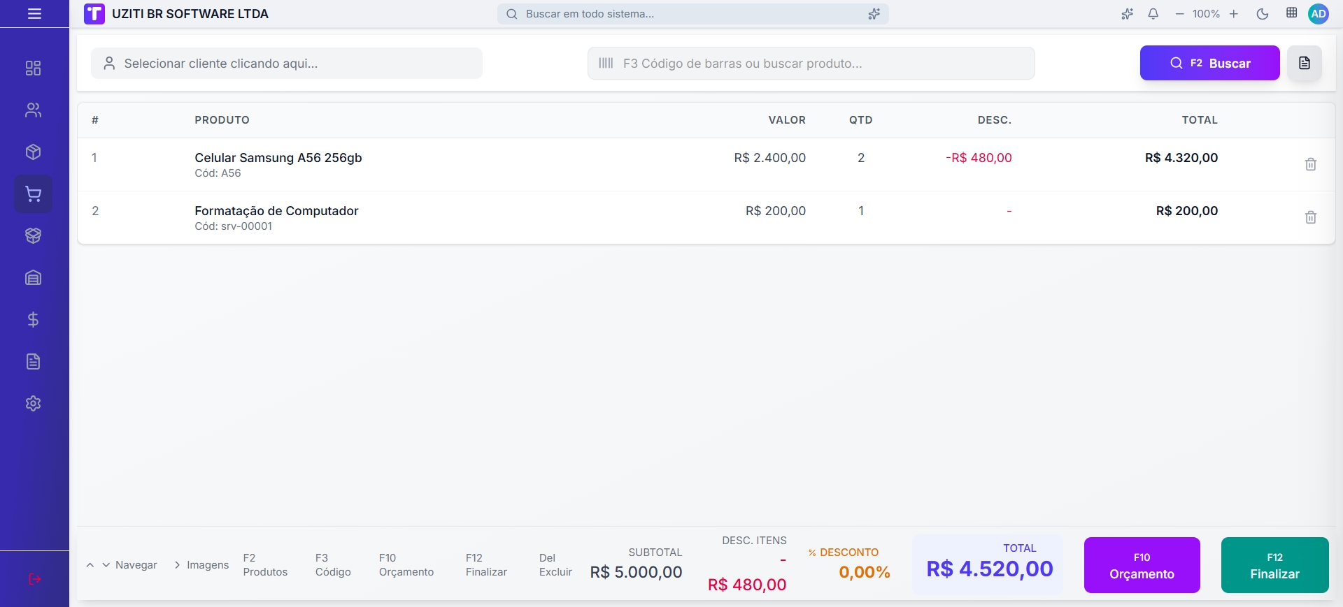 - ✅ Finalizar a venda por atalho ou botão de ação